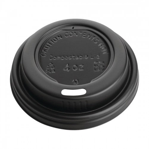 Fiesta Recyclable Espresso Cups Single Wall Black 114ml 4oz & Fiesta Compostable Espresso Cup Lids 114ml / 4oz (50 Pack)